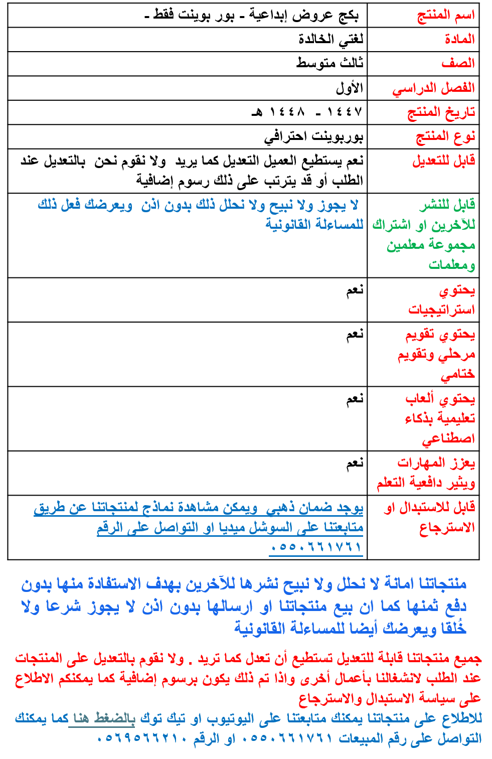 بكج عروض بوربوينت لغتي الخالدة 3م ف1
